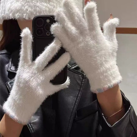 Rainbow Striped Fuzzy Scarf with Pom-Poms